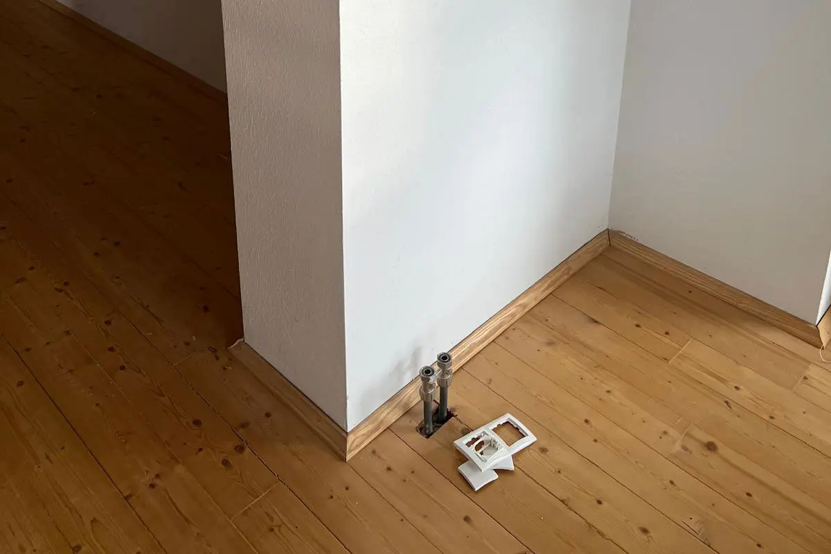 Im Rahmen der Modernisierung eines Bestandsgebäudes sollten zwei zusätzliche Planheizkörper nachgerüstet werden. Die besondere Herausforderung: Es war lediglich ein Hahnblock vorhanden und die vorhandenen Heizungsleitungen waren nicht an die bestehende Heiztherme angeschlossen. Zusätzlich war die Integration einer Smart-Home-Steuerung zur individuellen Raumtemperaturregelung vorgesehen. Alle Arbeiten mussten im bewohnten Zustand erfolgen – präzise Planung war entscheidend.